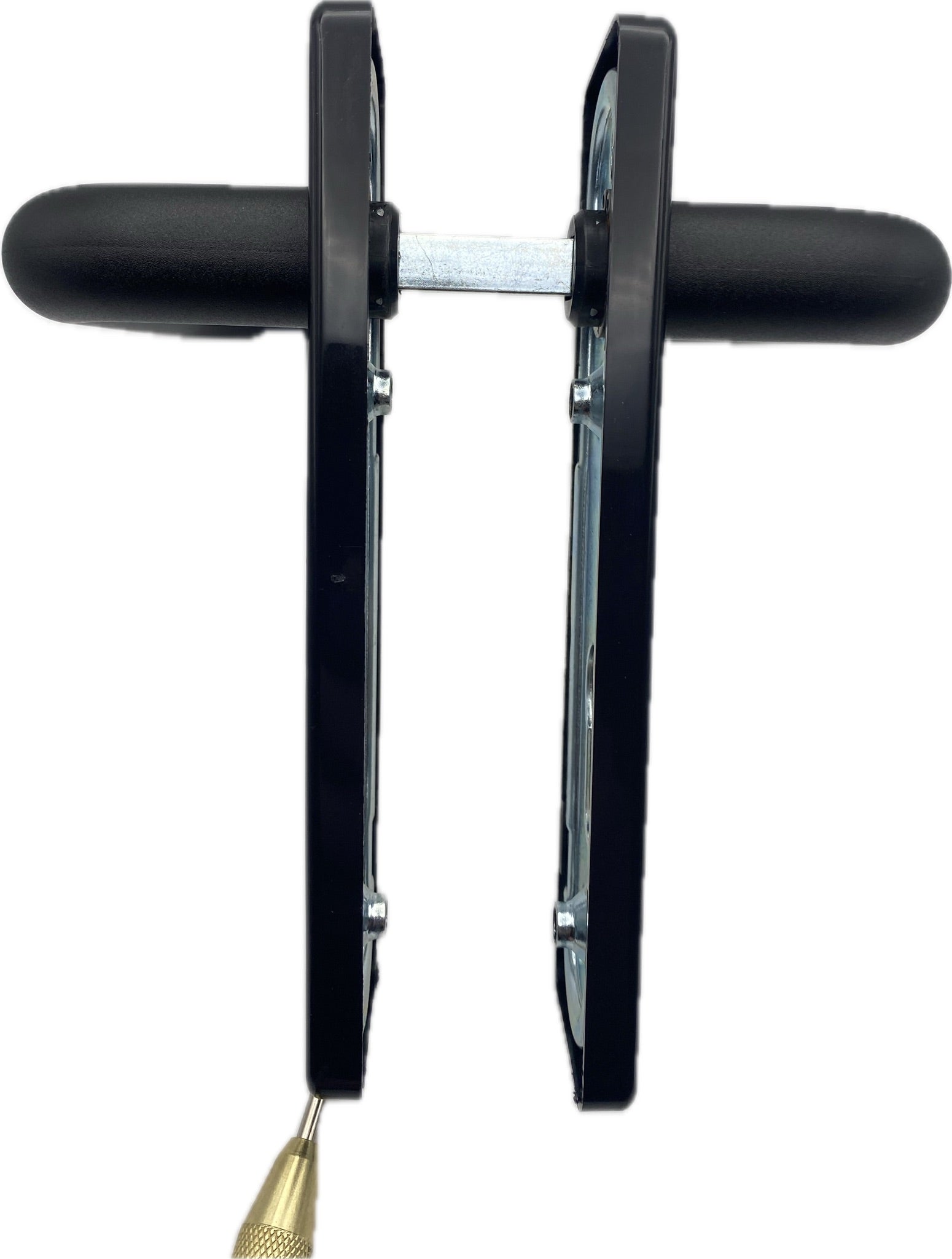 Lieferumfang: 2 x Türdrücker mit Beschlag, Kunststoffabdeckung, Vierkant 9mm, 12cm lang, Schrauben-Set