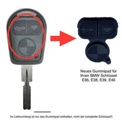 Autoschlüssel Drück Pad, Gummimatte für Funk Schlüssel passend für BMW 3 Taster, E36, E38, E39, E46